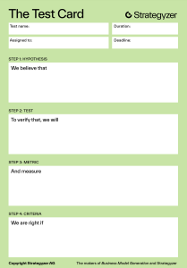 Test cards provide a structured approach to experimenting and validating hypotheses. They help address the following key questions: